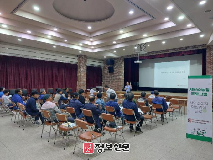 이번 교육에는 저탄소 농업 프로그램 시범사업에 참여한 80여 명의 농가가 참석했으며, 논에서의 메탄가스 감축 실천 방안을 중심으로 진행됐다.
