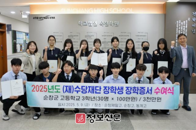 한편, 수양재단은 순창군과는 2014년부터 인연을 맺고 장학사업을 진행해 왔으며, 올해까지 총 210명의 고등학생에게 약 1억 9,800만 원의 장학금을 지원했다.