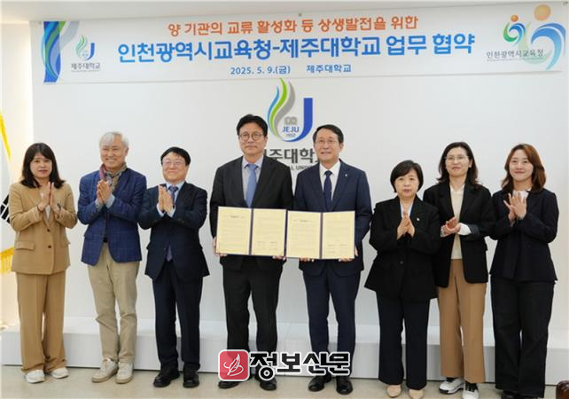 제주대학교(총장 김일환)와 인천광역시교육청(교육감 도성훈)은 5월 9일 제주대학교 산학협력관에서 업무협약을 체결했다.