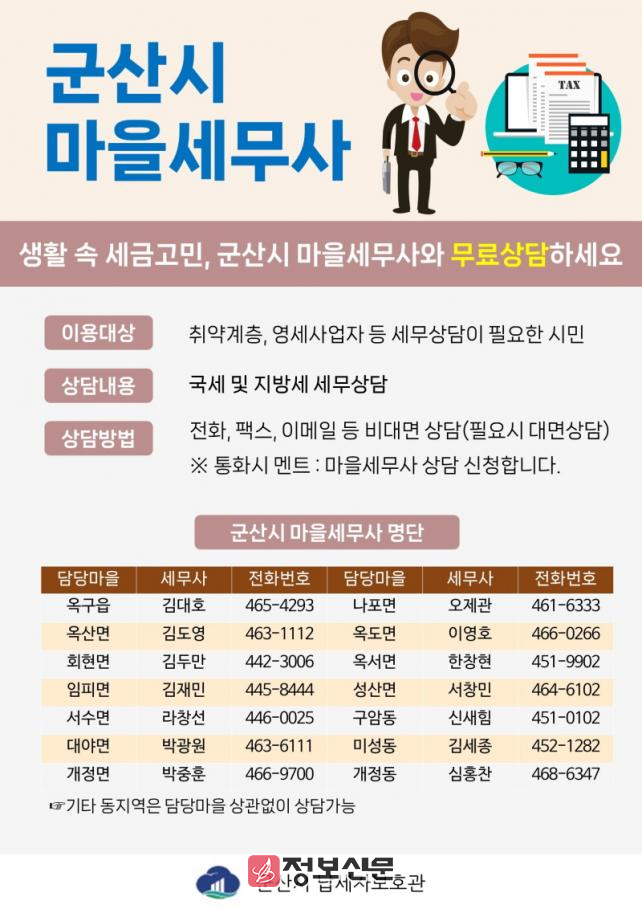 ![]() 군산시, 우리 동네 ‘마을세무사’ 서비스 운영 |