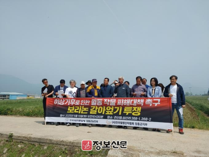 이날 행사는 장흥군농민회(회장 김성용) 주최로 열렸으며 최근 이상기후로 인해 맥류와 사료작물이 정상적으로 자라지 못해 생산량 감소로 이어지고 있어 농민들의 절박한 심정을 알리고자 마련되었다.