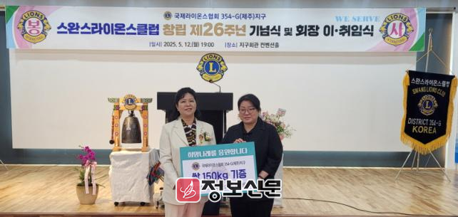 ![]() 스완스라이온스클럽, 사회적협동조합 희망나래 쌀 150kg 기증 |