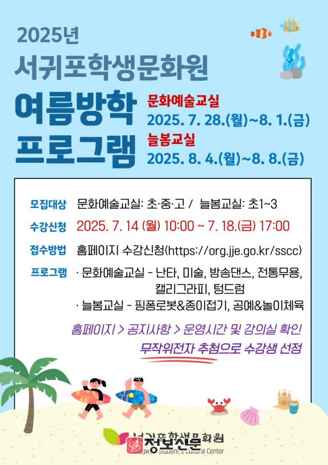 ![]() 서귀포학생문화원, 2025년 여름방학 문화예술교실과 늘봄교실 운영 |