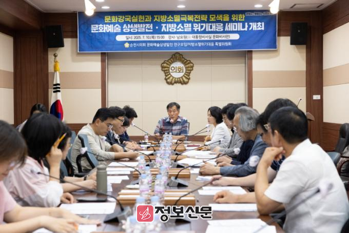![]() 순천시의회, 문화예술 상생발전.지방소멸 위기 대응세미나 개최 |