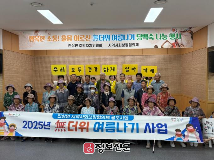 이번 사업은 혹서기 폭염에 취약한 홀몸 어르신 등 취약계층의 건강한 여름나기를 돕기 위해 마련됐다. 행사는 진상면 지역사회보장협의체와 주민자치위원회가 공동 주관해, 사전에 선정된 어르신 50여 명에게 삼계탕과 혹서기 필수 물품을 제공했다.