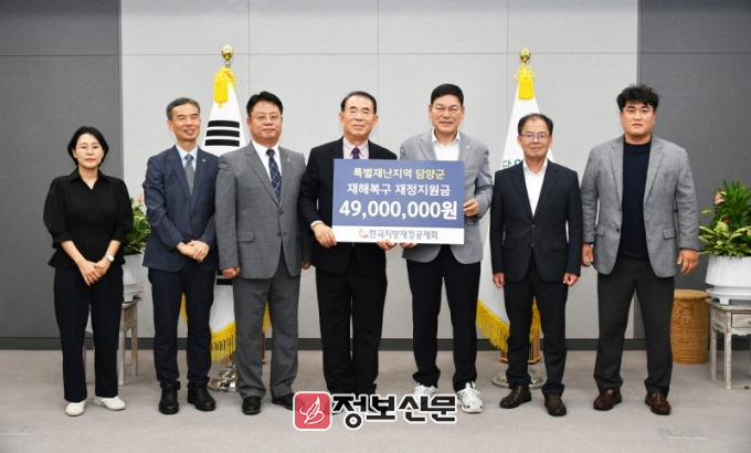 ![]() 담양군, 지방재정공제회로부터 재해복구 재정지원금 4,900만 원 지원받아 |