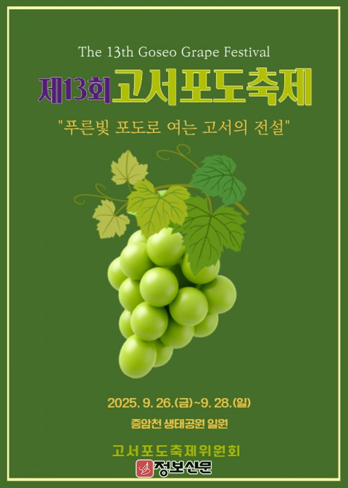이번 축제는 고서포도축제추진위원회 주최와 고서면 기관·단체 등 여러 사회단체의 후원으로 진행되며, 고서 포도의 우수성과 맛을 널리 알리고 지역 농산물의 소비를 촉진하기 위해 마련됐다.