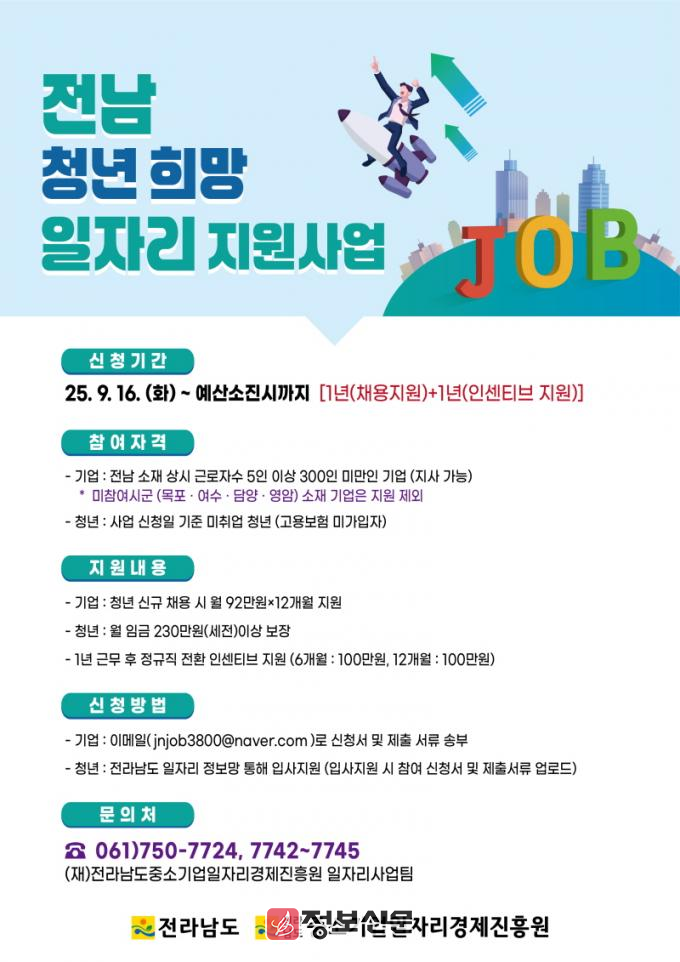 ![]() 전라남도, 청년 희망 일자리 참여기업·청년 모집 |