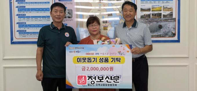 이날 전순란 장흥군새마을부녀회장은 회진면 취약계층을 지원하는데 써 달라며 2백만원을 회진면 지사협에 기부했다.