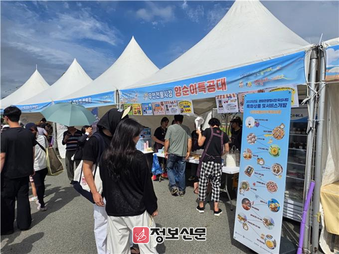 ‘양순이특공대’는 무안 양파 캐릭터 ‘양순이’를 브랜드화해 귀여운 이미지와 스토리텔링을 더한 점이 특징으로, 이들은 무안 대표 농산물인 양파와 고구마를 활용해 ▲양파찰꿀빵 ▲양순이김밥 ▲군고구마 맛 고도리 아이스크림 ▲무안갯벌라면 ▲양파잼 ▲양파장아찌 등 다양한 특화상품을 선보였으며, 현장 시식과 판매를 통해 방문객들의 큰 관심을 끌었다.