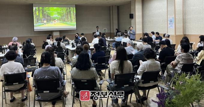 ![]() 나주문화재단 김찬동 대표이사가 한국문화예술위원회에서 열린 사업설명회에 참석해 공모 선정을 위한 발표를 진행하고 있는 모습. (사진 제공-나주문화재단) |