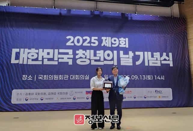 시상식은 지난 13일 국회의원회관 대회의실에서 열린 ‘제9회 대한민국 청년의 날 기념식’에서 진행됐다.