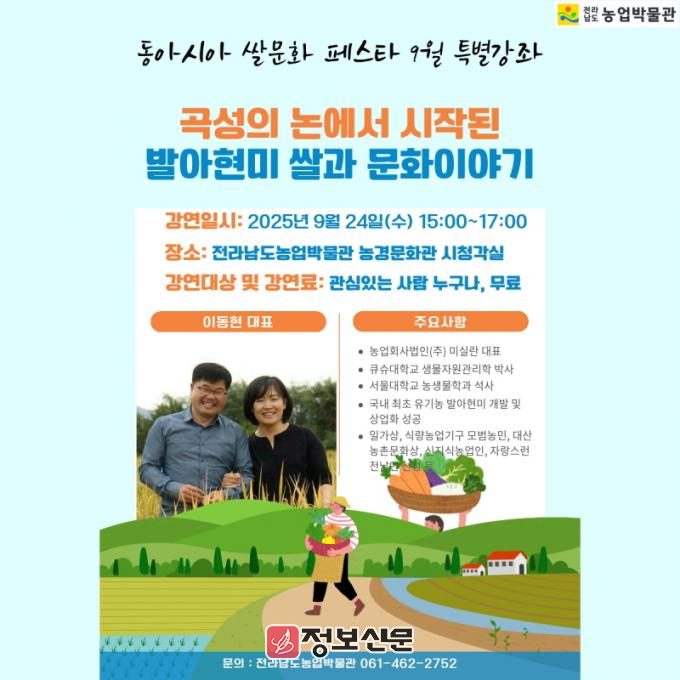 ![]() 전라남도농업박물관, 동아시아 쌀 문화 페스타 3차 특강 개최 |