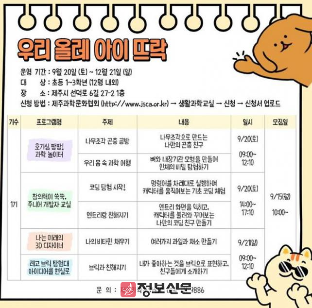 ![]() 제주과학문화협회, 생활과학교실과 함께 하는 주말 돌봄 ‘우리 올레 아이뜨락’ 운영 |