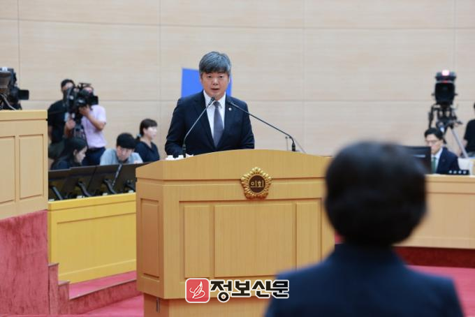 ![]() 본회의장에서 도정질문 중인 박원종 전남도의원 |