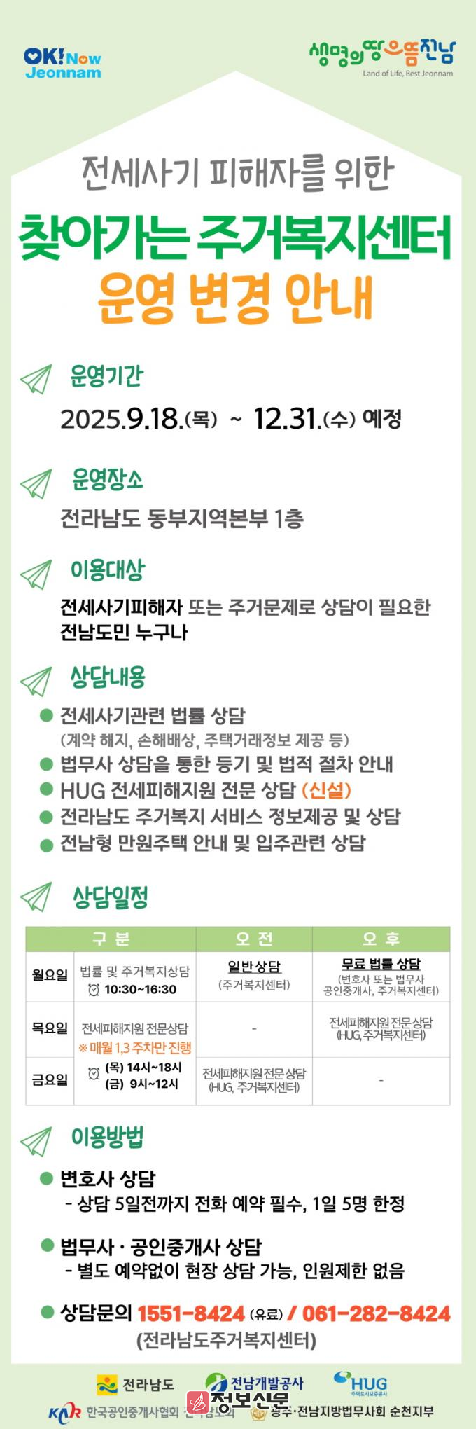 ![]() 전라남도, 찾아가는 주거복지센터 전세사기 피해상담 확대 운영 |