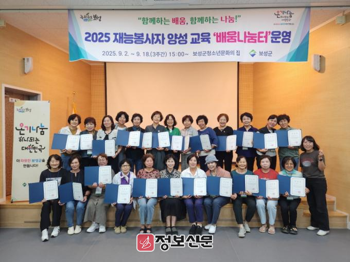 ![]() 보성군, 2025 재능봉사자 양성 교육 ‘배움나눔터’ 성황리 마무리 |