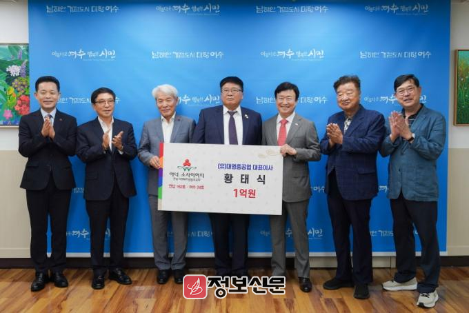 황태식 대표가 기부한 성금은 전남사회복지공동모금회를 통해 여수시 저소득가정과 사회복지시설 복지 사업비로 사용될 예정이다.