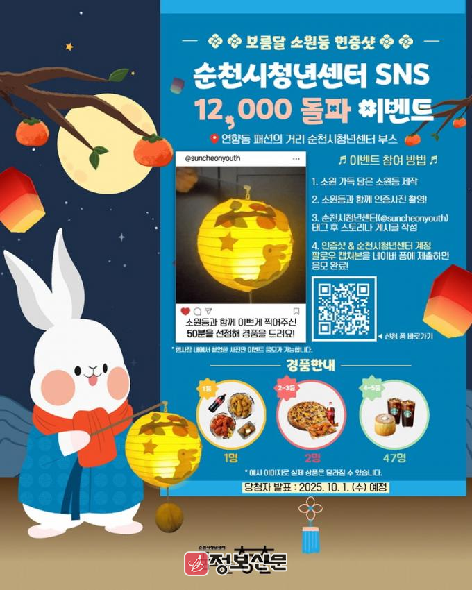 ![]() 순천시 청년센터, SNS 가입자 1만2천명 돌파 기념 이벤트 진행 |
