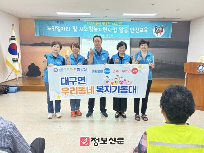 배대은 대구면장은 “우리동네 복지기동대사업” 복지 사각지대를 신속히 발굴하고 지원하는 ‘현장 중심형 복지 체계’의 핵심”이라며 “면민 누구나 도움이 필요할 때 가장 먼저 떠올릴 수 있는 든든한 복지 파트너가 되도록 적극 운영해 나가겠다”고 말했다.