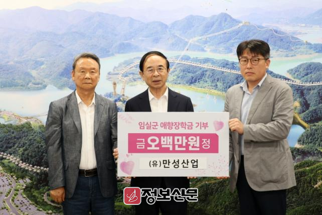 기탁식에 참석한 (유)만성산업 심춘도 이사는“고향 학생들이 경제적 부담 없이 학업에 전념하고, 자신들의 꿈을 마음껏 펼쳐가길 바라는 마음에서 기부를 이어오고 있다”며“앞으로도 지역 사회와 함께 성장하며 나눔을 실천하겠다”고 전했다.