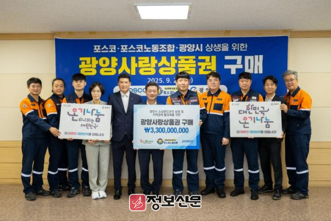 ![]() 23일, 광양시청에서 포스코, 포스코노동조합, 광양시와 함께하는 광양사랑상품권 구매행사가 진행됐다. |
