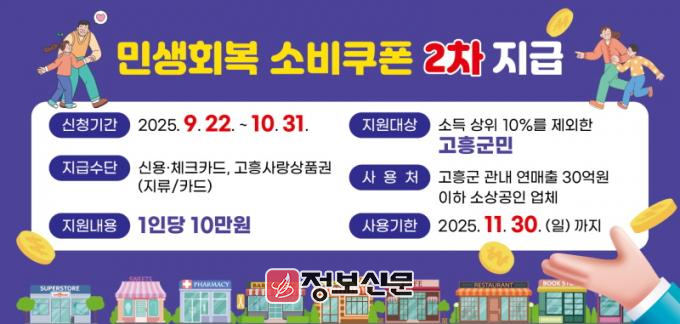 ![]() 고흥군, 민생회복 소비쿠폰 2차 지급 시행 |