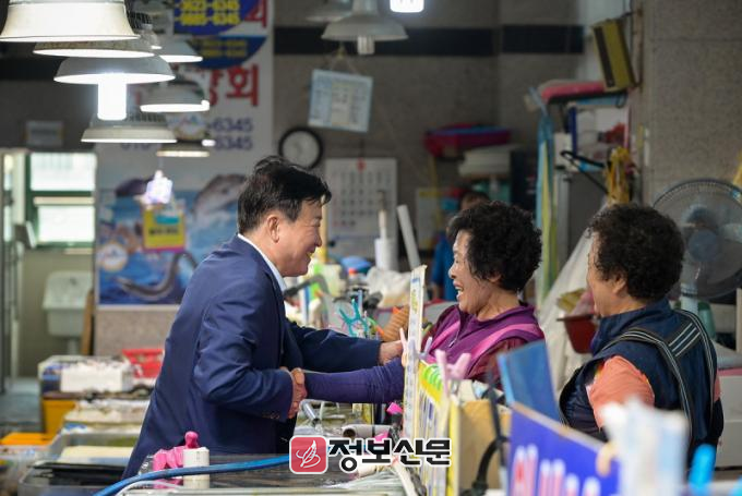 ![]() ▲ 정기명 여수시장이 지난 22일 추석 명절을 앞두고 관내 전통시장을 찾아 민생회복 소비쿠폰 조기 사용을 독려하고 소상공인을 격려했다.