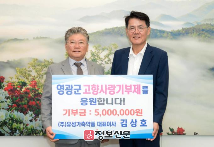 이에 대해 영광군수(장세일 군수)는 “바쁘신 일정에도 영광을 직접 찾아주신 ㈜유성가축약품 김상호 대표님께 깊은 감사의 뜻을 전한다.”라며, “기탁해 주신 고향사랑기부금은 주민 복리 증진과 지역 공동체 활성화를 위한 소중한 밑거름으로 사용하겠다.”라고 전했다.