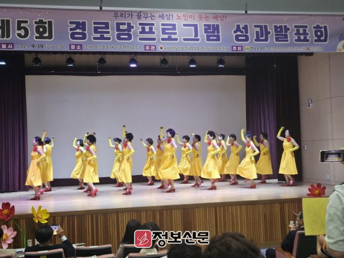 구례군 노인회 라인댄스팀은 선민수 단장을 필두로 회원 20명으로 구성돼 2024년 구례군 시니어 건강프로그램에서 최우수상을 수상한 바 있다. 특히 이번 성과발표회에서 구례군 대표 특산물인 산수유의 열매와 꽃을 형상화한 노란색 드레스와 빨간 구두를 착용해 관객들에게 큰 호응을 이끌어냈다.