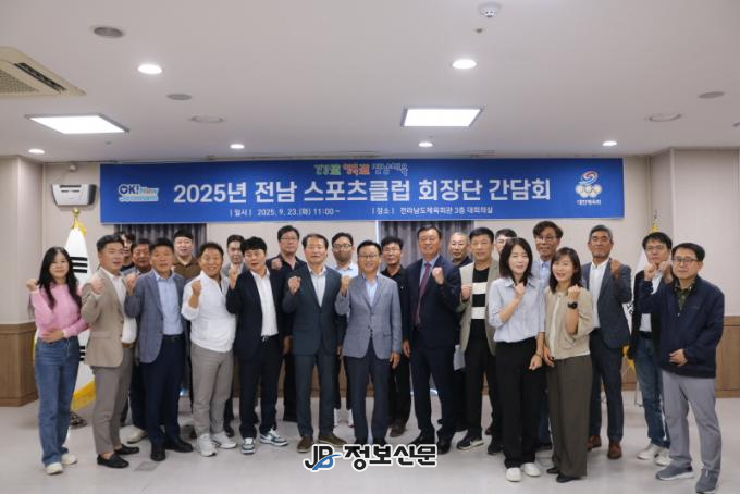 전라남도체육회(회장 송진호)는 23일 오전 11시 전남체육회관 3층 대회의실에서 손점식 사무처장 주관으로 ‘2025년 전남 스포츠클럽 회장단 간담회‘를 개최하여 도내 스포츠클럽 운영 현황을 공유하고, 향후 정책 발전 방향을 함께 논의했다.