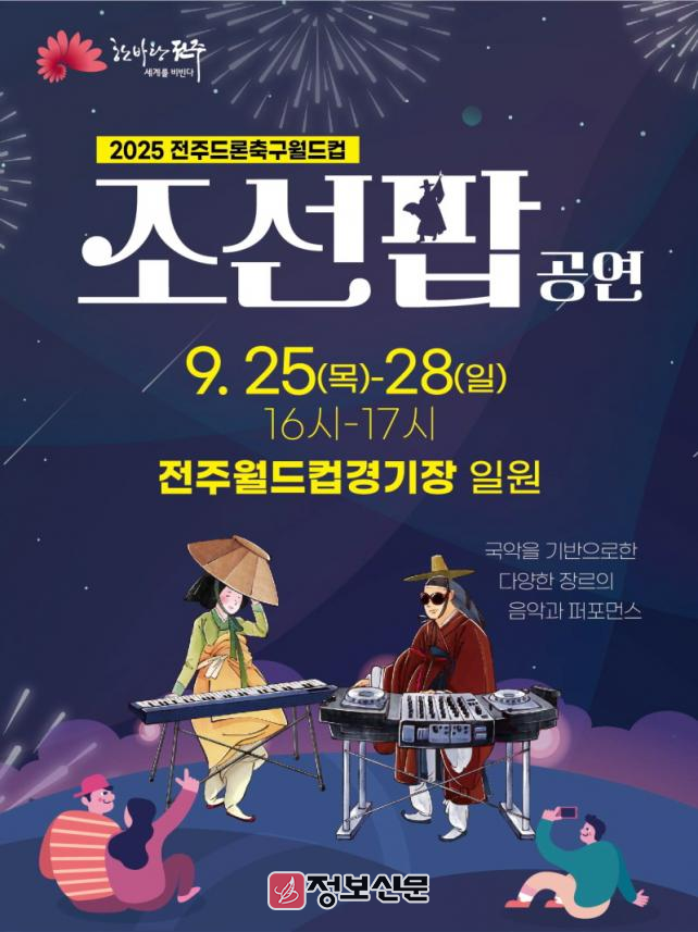 전주시 관계자는 “이번 월드컵 기간 조선팝 공연을 통해 전주조선팝의 브랜드 가치를 높이고 문화·관광·스포츠가 융합된 글로벌 문화도시로 도약하는 계기를 마련하겠다”면서 “관람객들에게 세계적인 스포츠와 공연 예술을 한자리에서 체험하는 오감만족의 기회를 제공하겠다”고 말했다.