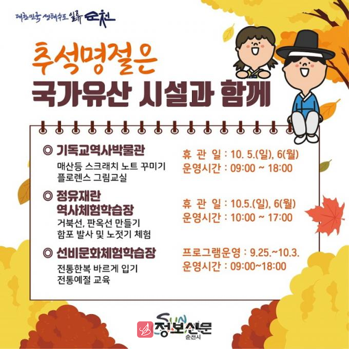 ![]() 순천시 국가유산시설, 추석 명절맞이 체험 프로그램 운영 |