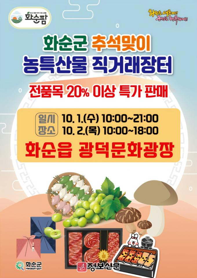 ![]() 화순군, 광덕문화광장 ‘추석 직거래장터’ 개장 |