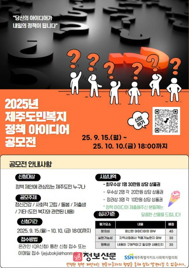 ![]() 제주사회복지협의회, 도민복지 정책아이디어 공모전 개최 |