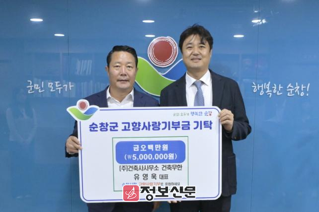![]() (주)건축사사무소 건축무한 유영욱 대표, 2년 연속 순창군에 고향사랑 기부 |
