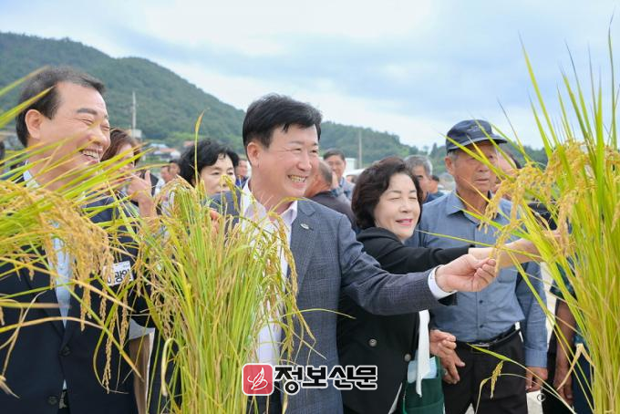 ![]() ▲ 여수시(시장 정기명)는 벼 수확을 앞두고 지난 24일 소라면 대곡마을에서 ‘2025년 벼농사 종합평가회’를 열었다.