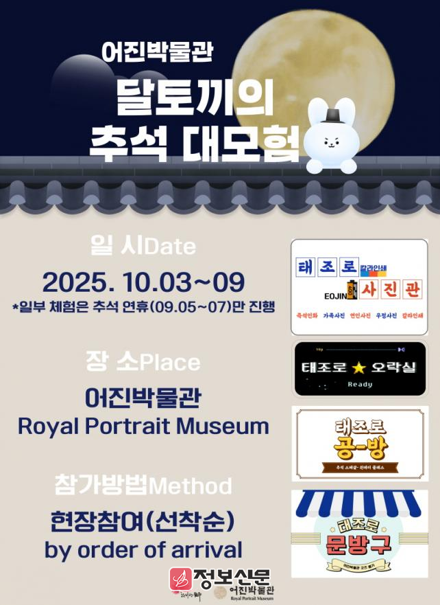 모든 행사 프로그램은 무료로 진행되며, 체험 프로그램의 경우 한정 수량으로 진행된다. 또한 어진박물관은 ‘달토끼의 추석 대모험’을 주제로 추석을 맞아 전주 태조로에 놀러 온 달토끼와 함께 사진관, 오락실, 공방, 문방구 등을 방문하는 콘셉트의 체험 프로그램을 운영한다.