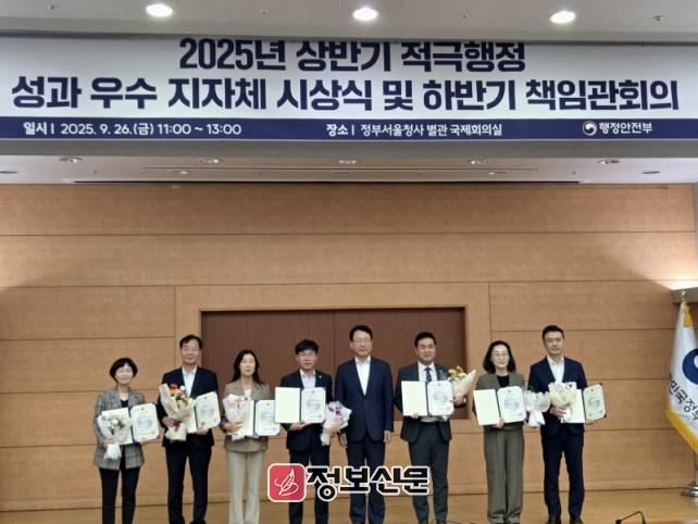 특히 2023년 실적 종합평가, 2024년 상반기 성과점검, 2024년 실적 종합평가, 2025년 상반기 성과점검까지 4회 연속 행정안전부 장관상을 수상하며 성과로 입증된 적극행정 모범 지자체로서의 위상을 확고히 했다.