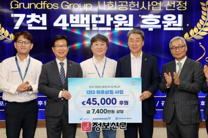 한국그런포스펌프㈜와 Poul Due Jensen재단(Grundfos Foundation)은 광산구 1313 이웃살핌 사업에 3년간 총 4만 5,000유로(한화 약 7,400만 원)를 지원하며, 국내에서는 광산구가 유일하게 선정됐다.
