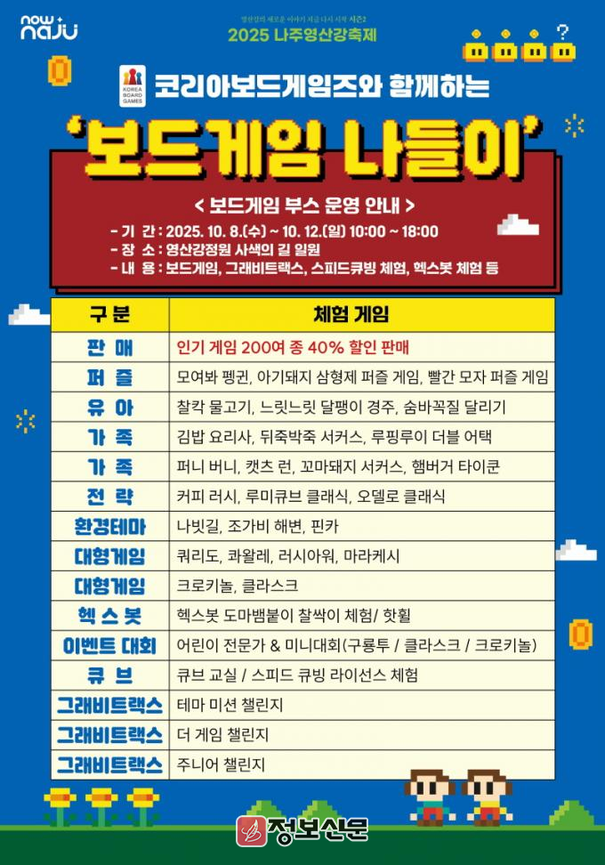 ![]() 나주시, 영산강축제서 ‘보드게임 나들이’ 운영 |