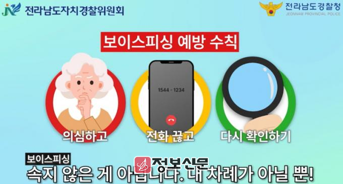 이에 전남자치경찰위원회는 젊은 세대부터 고령층까지 누구나 쉽게 이해할 수 있도록 짧고 직관적인 숏폼 형식의 보이스피싱 예방 영상을 제작해 배포하고, 전남자치경찰위원회 누리집을 통해 누구나 다운받아 활용할 수 있도록 했다.