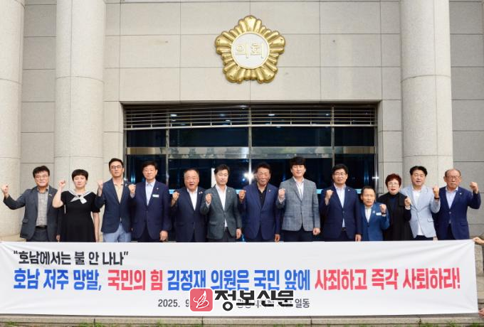 시의원들은 지난 29일 오전 성명서를 통해 “지난 25일 국회 본회의에서 열린「경북·경남·울산 초대형 산불 피해 구제 및 지원 특별법안」표결 과정 중 김정재 의원이 ‘호남에서는 불 안 나나’는 도저히 용납할 수 없는 망언을 쏟아냈다”라며 “이는 단순한 지역 비하를 넘어 국민의 생명과 안전을 경시하는 몰지각한 발언”이라고 비판했다.