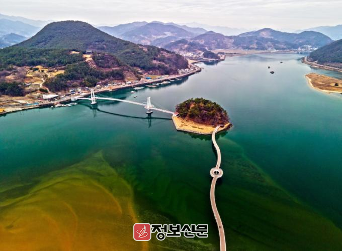 배알도 섬 정원은 550리를 달려온 섬진강이 바다와 만나는 곳에 마침표처럼 동그마니 떠 있는 낭만플랫폼으로 2개의 해상보도교를 통해 걸어 들어갈 수 있다.