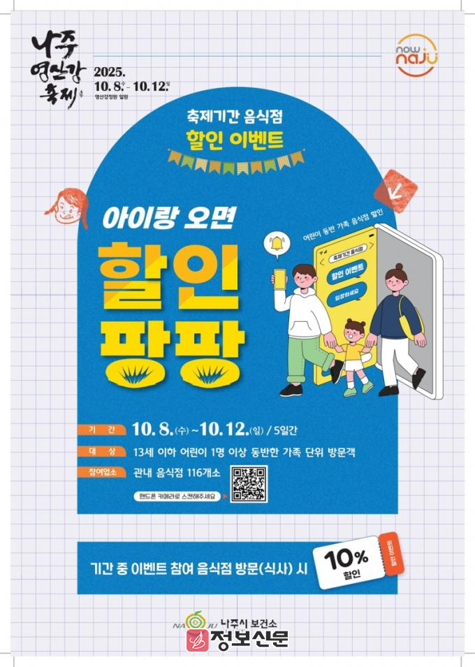 13세 이하 어린이를 동반한 가족이 이벤트 참여 음식점에서 식사 시 10% 할인을 받을 수 있으며 총 116개 음식점이 참여했고 참여 업소는 나주시 홈페이지, SNS 또는 음식점 입구 포스터를 통해 확인할 수 있다.