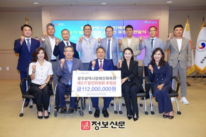 광주시장애인체육회 제2기 발전위원회는 장애인체육의 경쟁력 강화를 위해 구성된 민간 후원 조직으로, 지역 기업과 일반 후원인 100명이 자발적으로 100만원씩 후원금을 모아 총 1억1200만원을 조성, 이날 후원금을 전달했다.