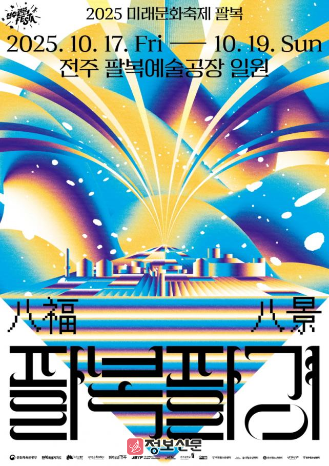 전주시는 오는 10월 17일부터 19일까지 3일간 팔복예술공장 일원에서 ‘팔복팔경(八福八景)’을 주제로 전통문화와 첨단기술, 시민 창작이 어우러진 여덟 가지 미래의 문화 풍경을 선보이는 ‘2025 미래문화축제 팔복’을 개최한다.