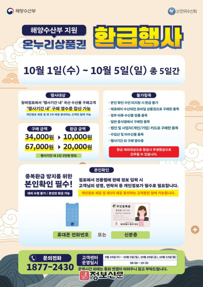 환급 기준은 구매금액 3만4000원 이상 구매하면 1만원, 6만7000원 이상 구매하면 2만원이다.