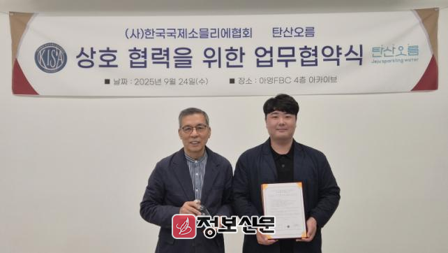 제주테크노파크(원장 지영흔, 제주TP)는 최근 탄산오름(대표 이광희)이 제조하는 플레인, 레몬향, 감귤향, 한라봉향 등 탄산수 4종이 ㈔한국국제소믈리에협회(회장 고재윤) 공식워터로 지정됐다고 30일 밝혔다. 관련 협약은 24일 서울 중구 한국국제소믈리에협회 사무실에서 진행됐다.