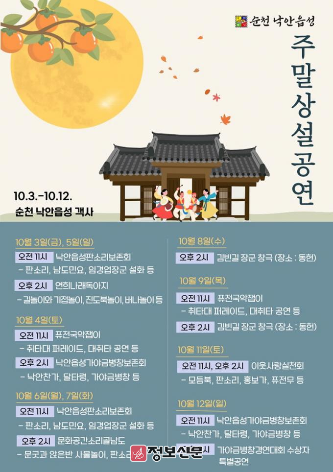 ![]() 순천시, 추석 연휴 기간 순천 낙안읍성에서 만나는 전통공연과 창극 풍성 |